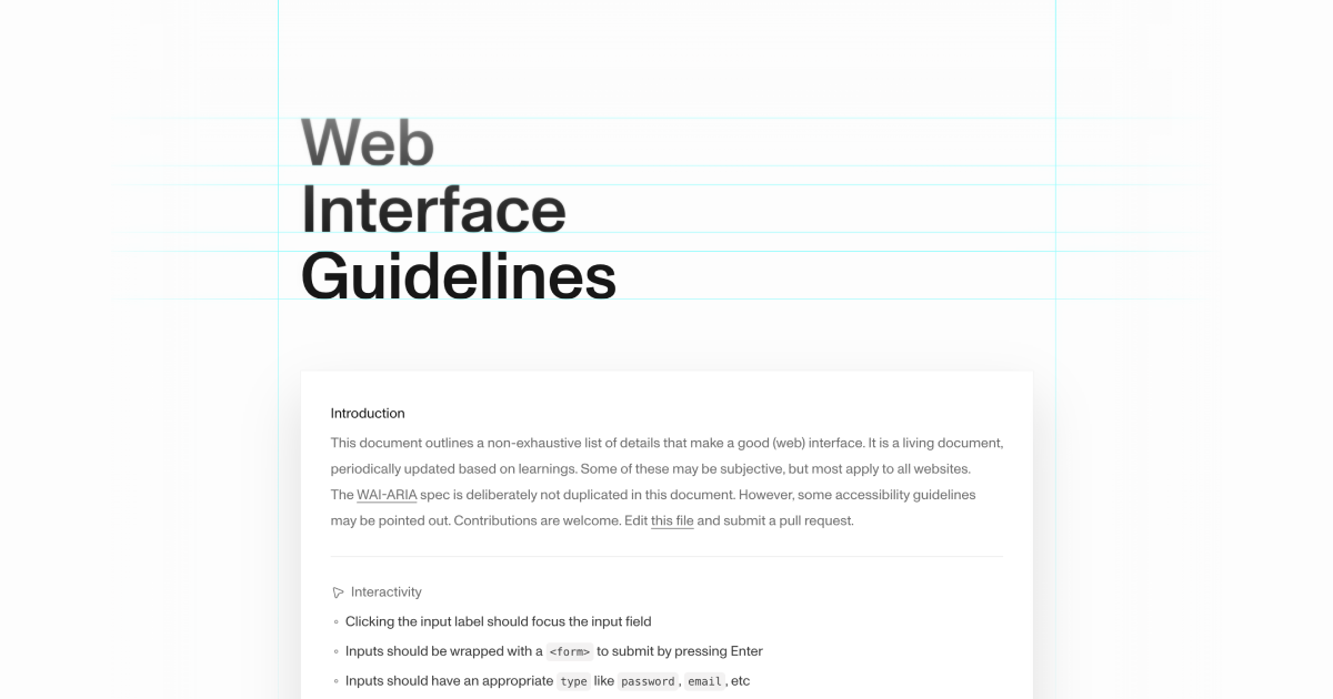 Creating an intuitive and efficient web interface is both an art and a science, combining aesthetic design with technical precision to provide a seamless user experience. This evolving body of knowledge highlights a variety of practical tips and best practices for building high-quality web interfaces. While some suggestions may evoke subjective preferences, many are rooted in well-established principles, covering diverse aspects such as interactivity, typography, motion, touch interactions, optimizations, accessibility, and design strategy.