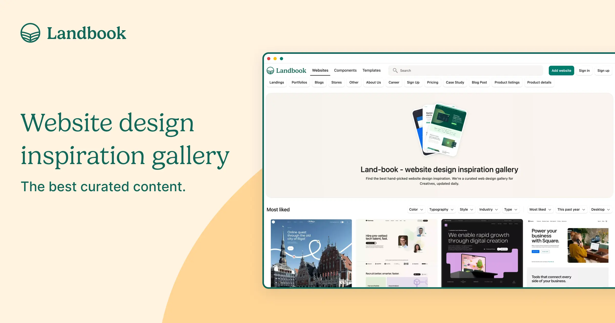 Landbook - website design inspiration galleryFind the best hand-picked website design inspiration. We're a curated website design gallery for Creatives, updated daily.