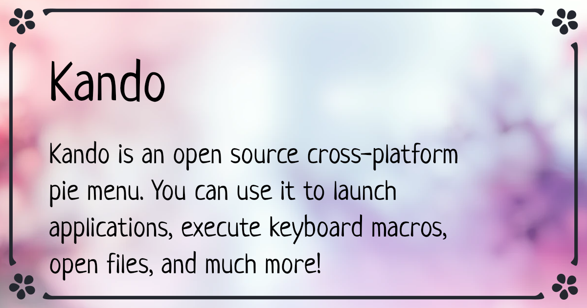 KandoKando is an open source cross-platform pie menu. You can use it to launch applications, execute keyboard macros, open files, and much more!
